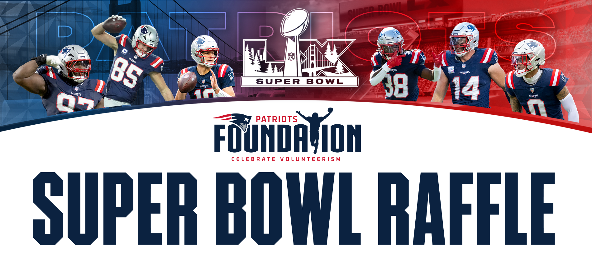 Raffle only open to individual legal residents of the fifty (50) United States (excluding CA, FL, NY, Puerto Rico, and other territories and possessions) who have attained the age of majority in their state of residence as of the date of entry into the Raffle. Employees of The New England Patriots Charitable Foundation Inc., the Kraft Group Companies, and each of their respective affiliates, officers, directors, employees, agents, advertising, public relations and promotion agencies, the judges, and members of each of their immediate families (i.e. spouses, parents, children and siblings, and their respective spouses) and those living in the same household of each are not eligible to enter. For Official Rules, click here.